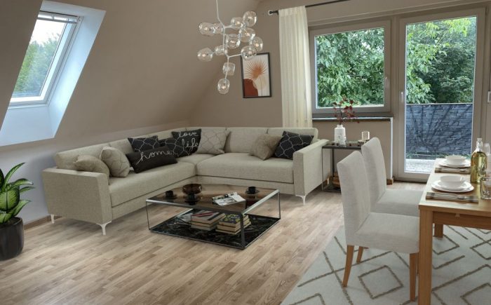 Außerdem wurde die Energie-Bilanz der Wohnung verbessert, in dem die Dachschrägen einen größeren Querschnitt an Dämmung erhielten. Ebenfalls energiesparend macht sich der Austausch von 75% aller Fenster bemerkbar.
