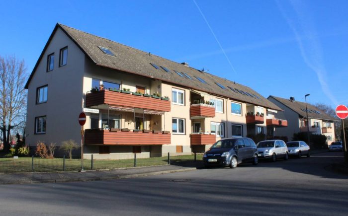Das Grundstück des Mehrfamilienhauses und auch das Umfeld ist sehr gepflegt.