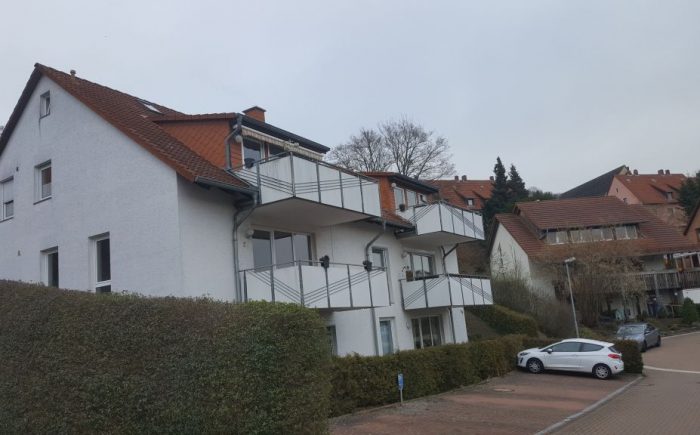 Die helle Küche bietet Platz für einen kleinen Sitzplatz und hat einen ansprechenden Bereich zum Kochen. Im großflächigen Wohnzimmer ist Platz für eine entsprechendes Sofa und auch einen Esstisch. Das Schlafzimmer bietet Platz für ein großes Bett und einen Kleiderschrank mit etwas Geschick entsteht hier in kleine Wohlfühloase. Im Tageslicht-Bad befindet sich eine große Dusche. Die Böden in der gesamten Wohnung sind mit Laminat oder Fliesen ausgestattet. Die 70 m² – Wohnung ist annährend barrierefrei. Da das Haus am Hang gebaut ist, kommen Sie stufenlos in dieses Wohnung. Zum Angebot gehört ein Außenstellplatz, dieser befindet sich direkt vor dem Haus. Supermärkte und zahlreiche Einkaufsmöglichkeiten sind in unmittelbarer Nähe zahlreich vorhanden und fußläufig bequem erreichbar.
